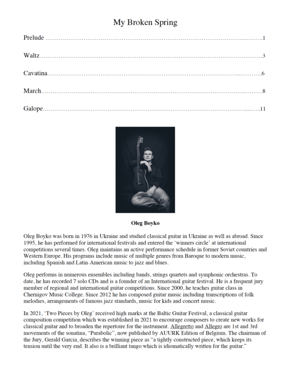 A five movement suite for advanced guitarist. Captivating contemporary music.