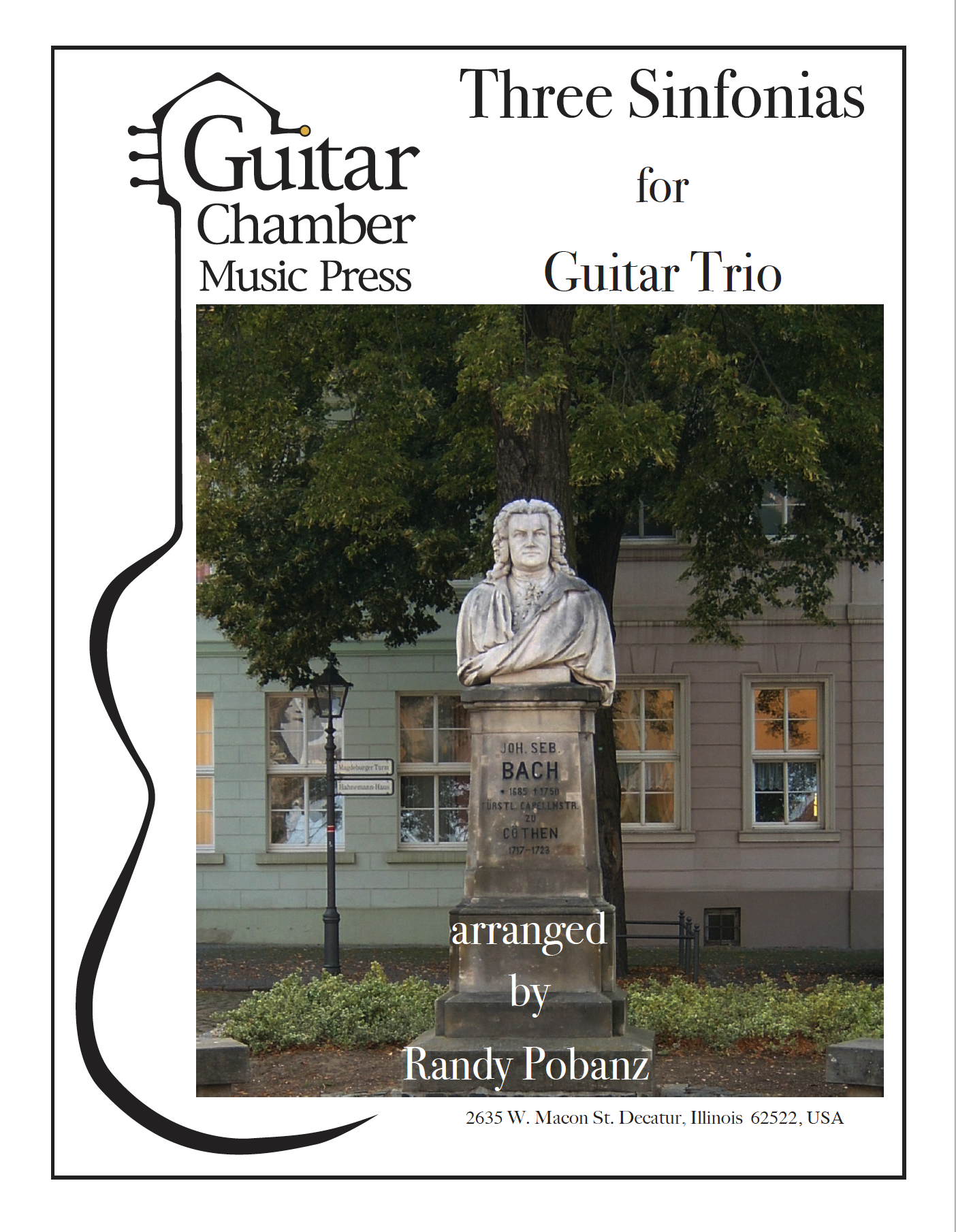 J.S. Bach composed a set of fifteen three-part inventions, or sinfonias, in 1720 while living in the city of Kothen, which is the capital of the district of Anhalt-Bitterfeld in the Saxony region of Germany. The three sinfonias transcribed in this set include No. 6, BWV 792, No. 10, BWV 796, and No. 12, BWV 798. The original keys of these works are E major, G major and A major respectively. The keys of these transcriptions are A major for No. 6, D major for No. 10 and G major for No. 12. These key centers were chosen to keep the voice separation as close to the originals as possible. The music is suitable for advanced high school or intermediate/advanced college level.